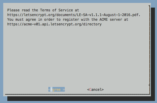 Переходим в директорию и запускаем letsencrypt-auto, чтобы загрузить все необходимые зависимости и обновить исходный код клиента.