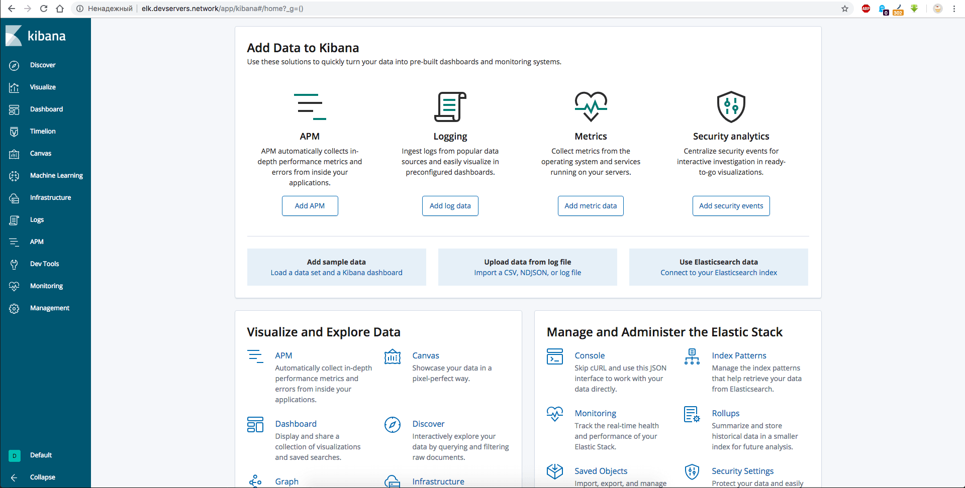 Создадим новый конфигурационный файл в директории NGINX /etc/nginx/conf.d/elk.devservers.network.conf