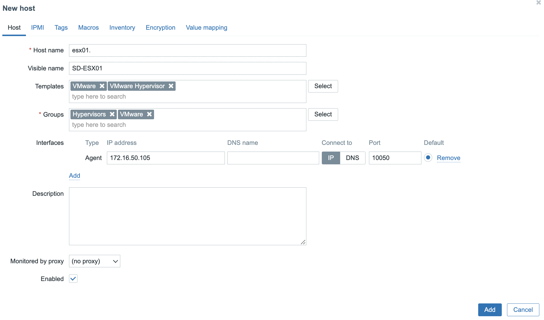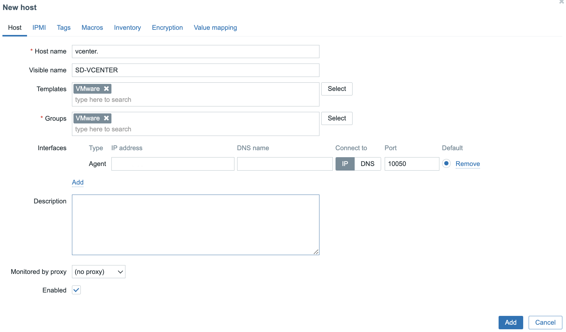 Добавляем vCenter Server в Zabbix