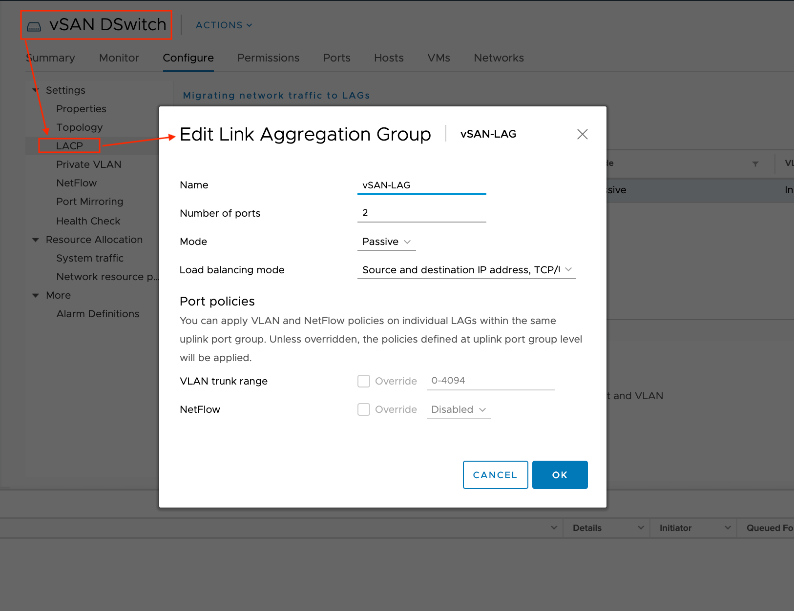 Настройка LACP на Distributed Switch в VMware vSphere