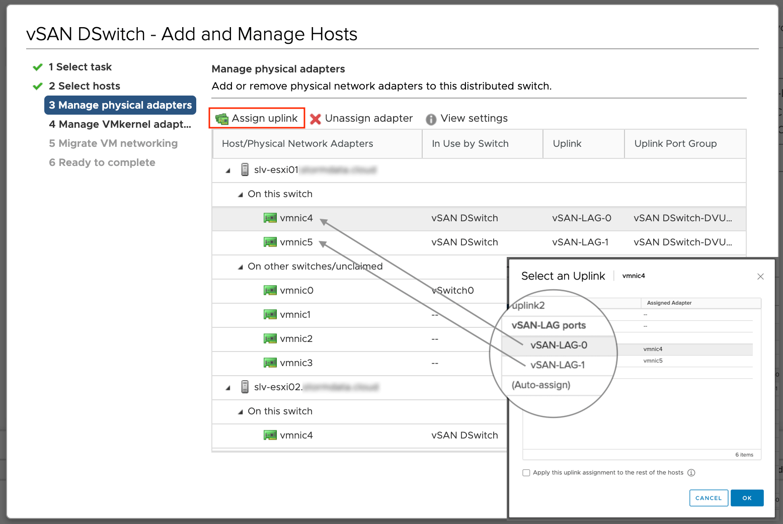 Назначаем LAG-порты к соответствующим vmnic. По аналогии назначаем порты для других хостов.
